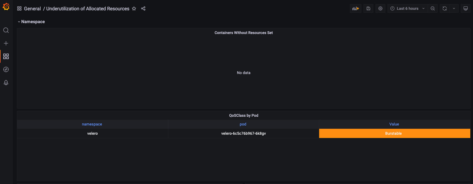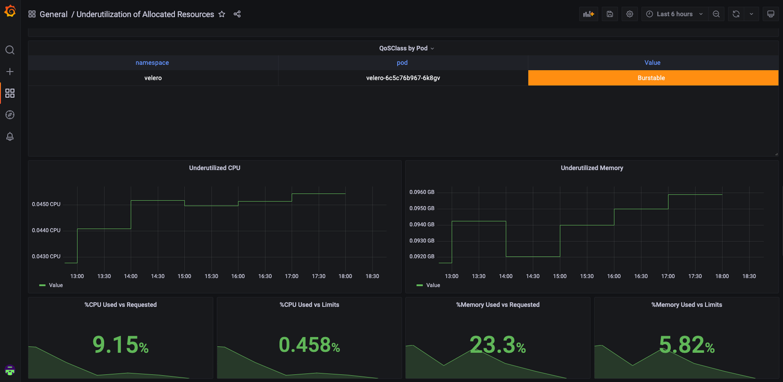 Underutilization of Allocated Resources dashboard for Grafana | Grafana Labs