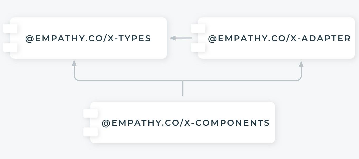 Let’s say that we are developing a feature for our main package, the X Components. This library has two main dependencies: the X Adapter and the X Types.