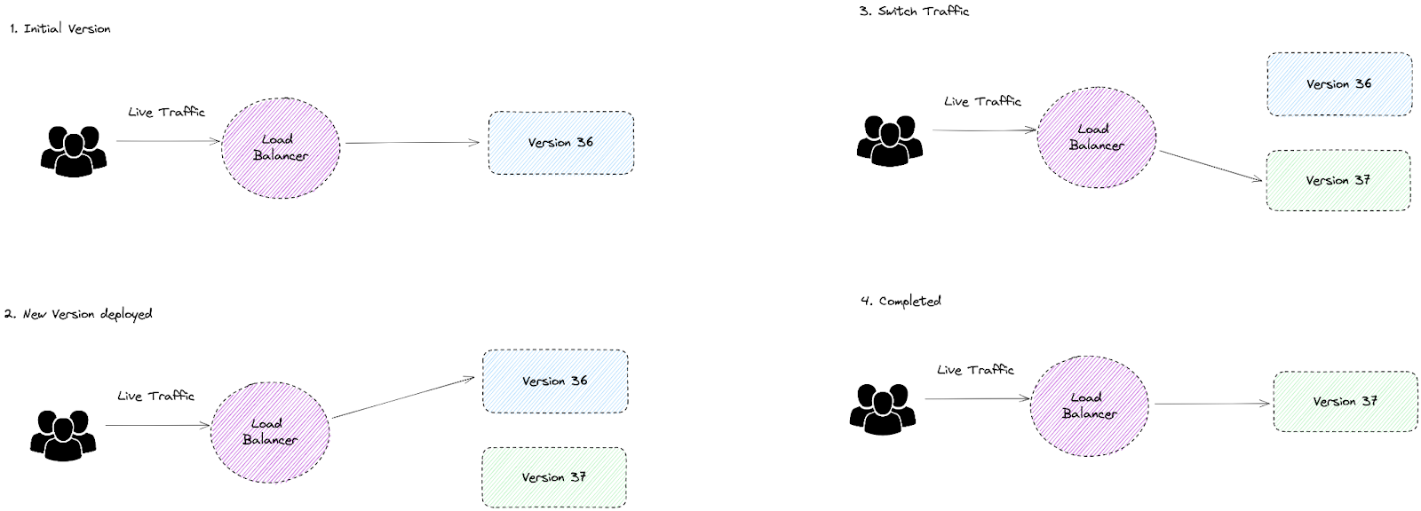 Gradually transfer traffic from an existing application (blue) to a newer one (green), while the blue version acts as a backup.