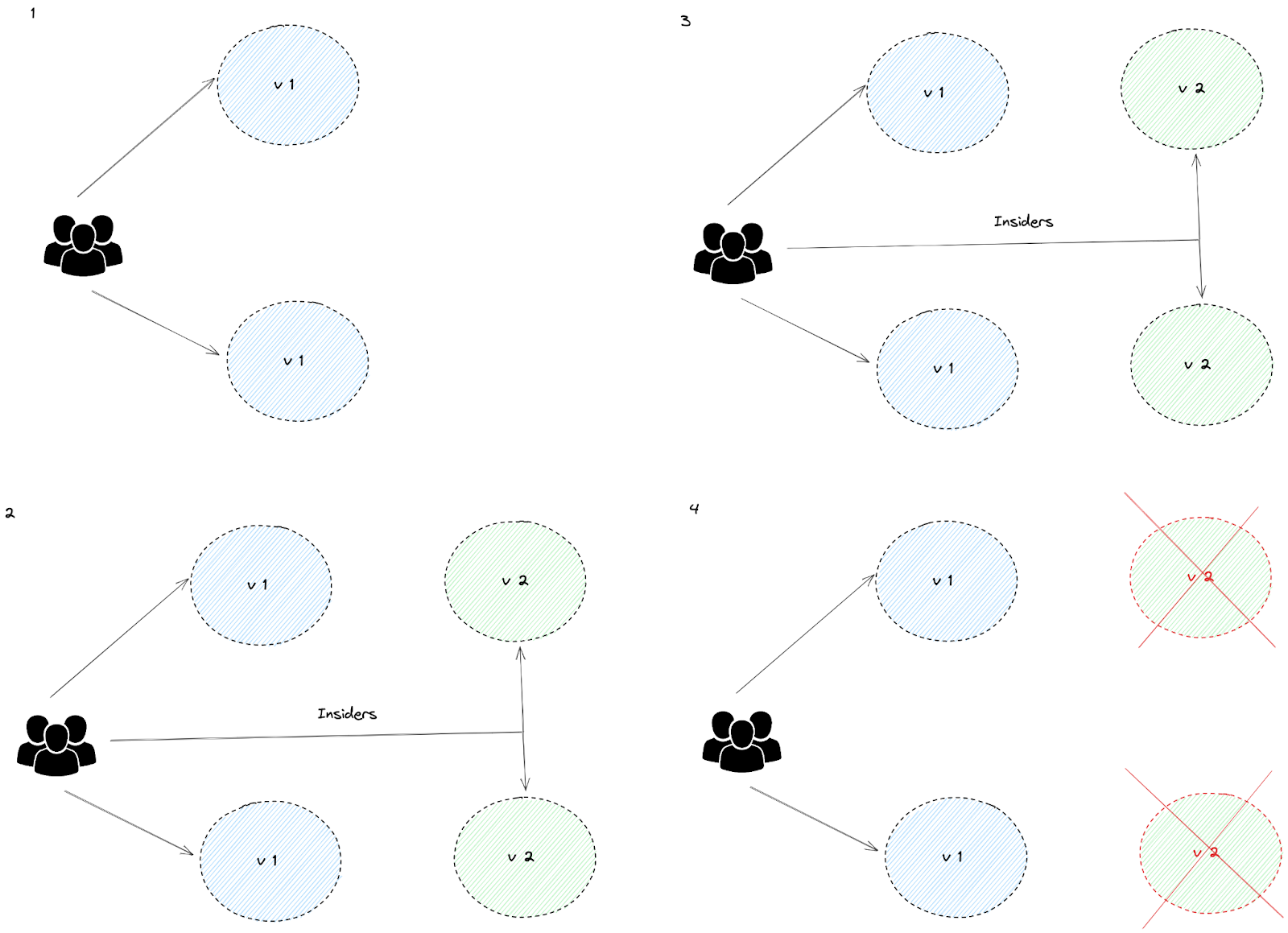 Channel a limited amount of traffic to a new canary service, and then if it passes reliability tests, you can gradually shift all traffic from the old to the new service, and the canary becomes the default version.